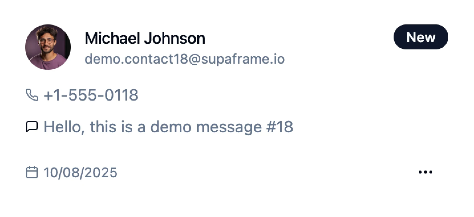 Turn leads into customers using Framer's Contact Form and manage them in Supaframe's CRM dashboard.