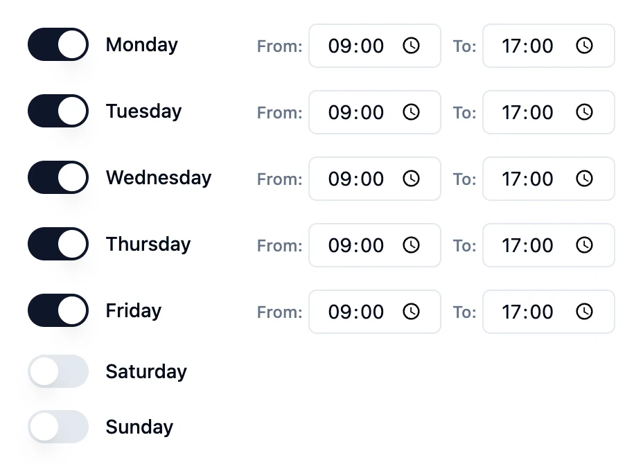In your component dashboard, customize booking services, set availability, choose display fields, configure poll options, and more.