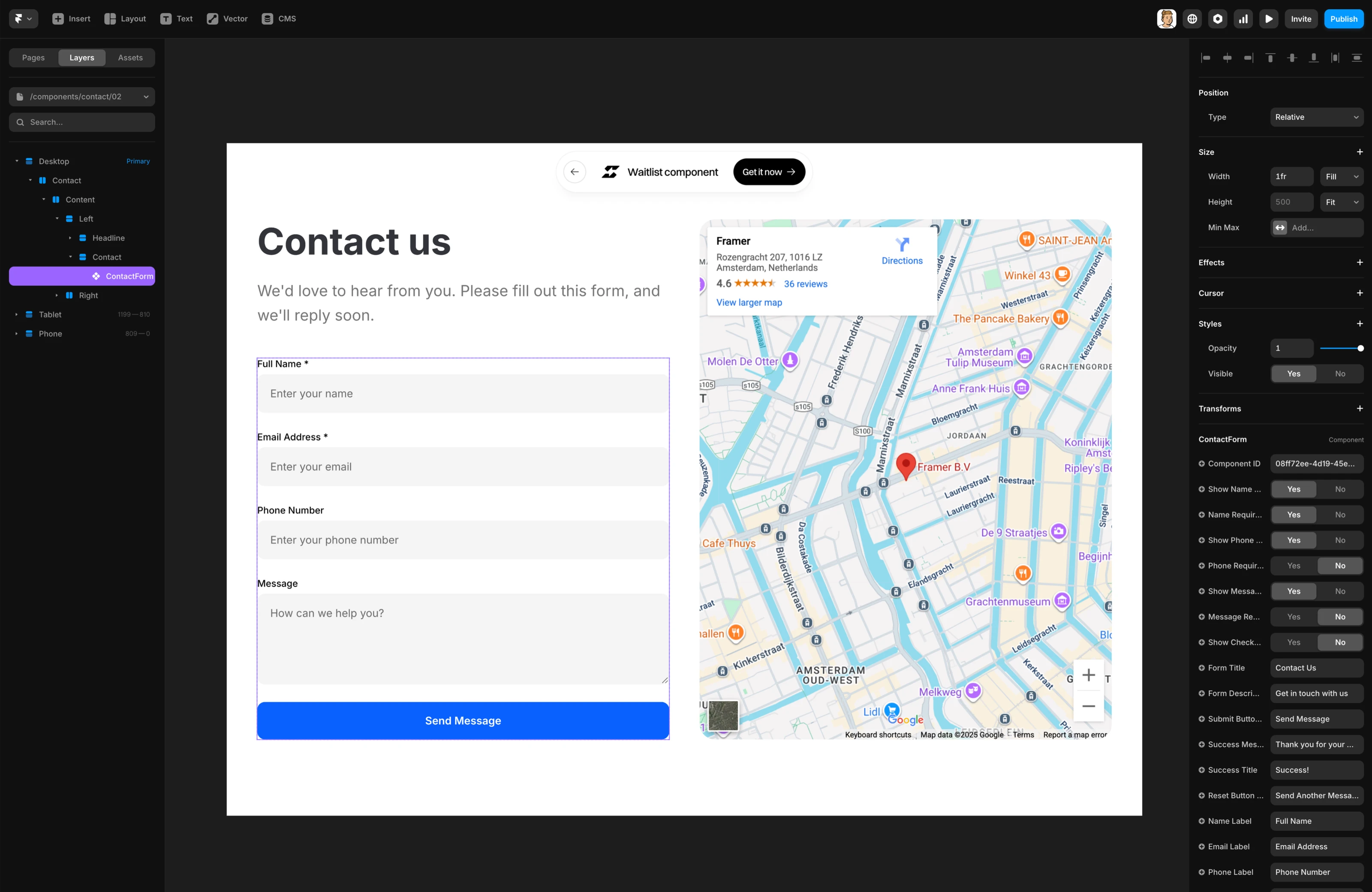 Create smart Framer components, customize them visually, and track all responses in one place — no code needed.