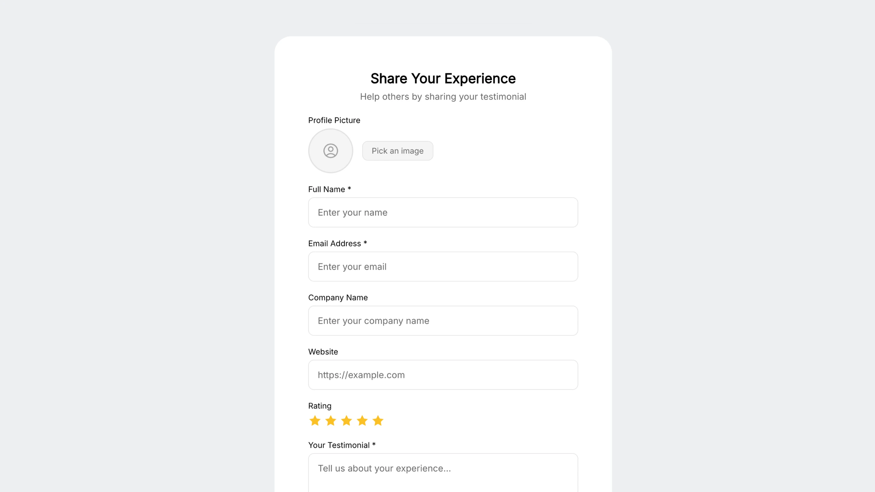 Testimonial collection form