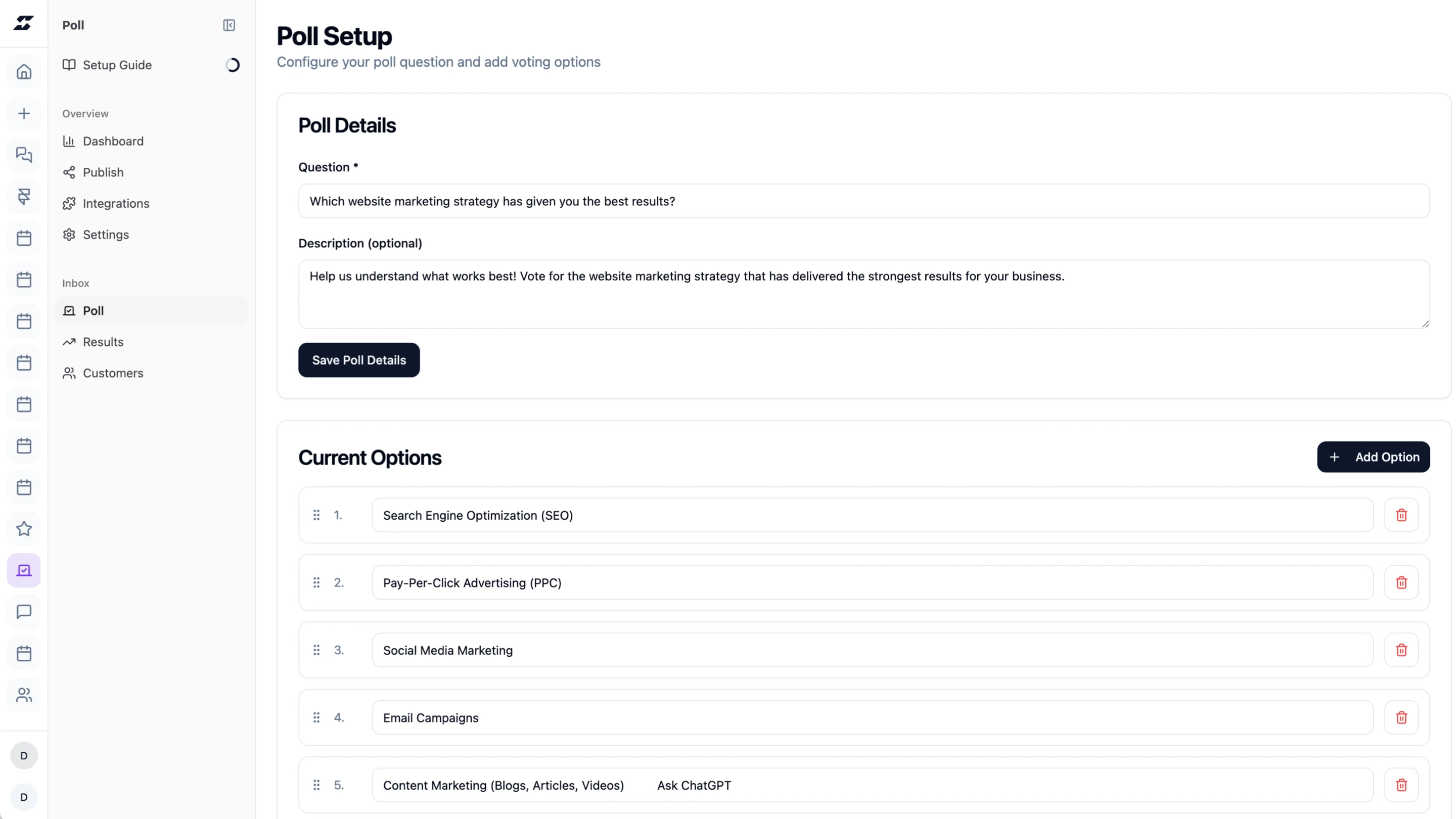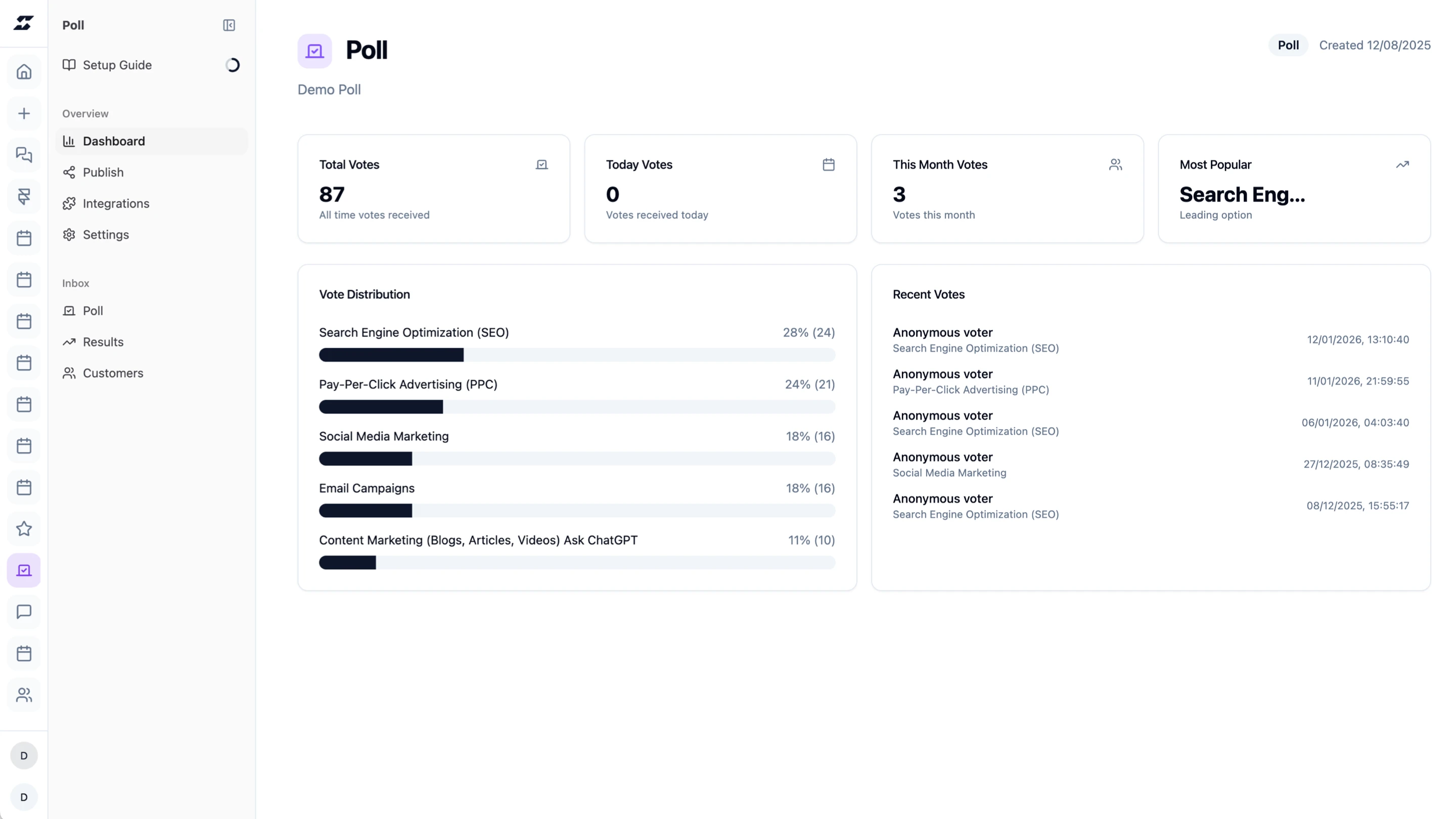 Manage polls from the Supaframe dashboard