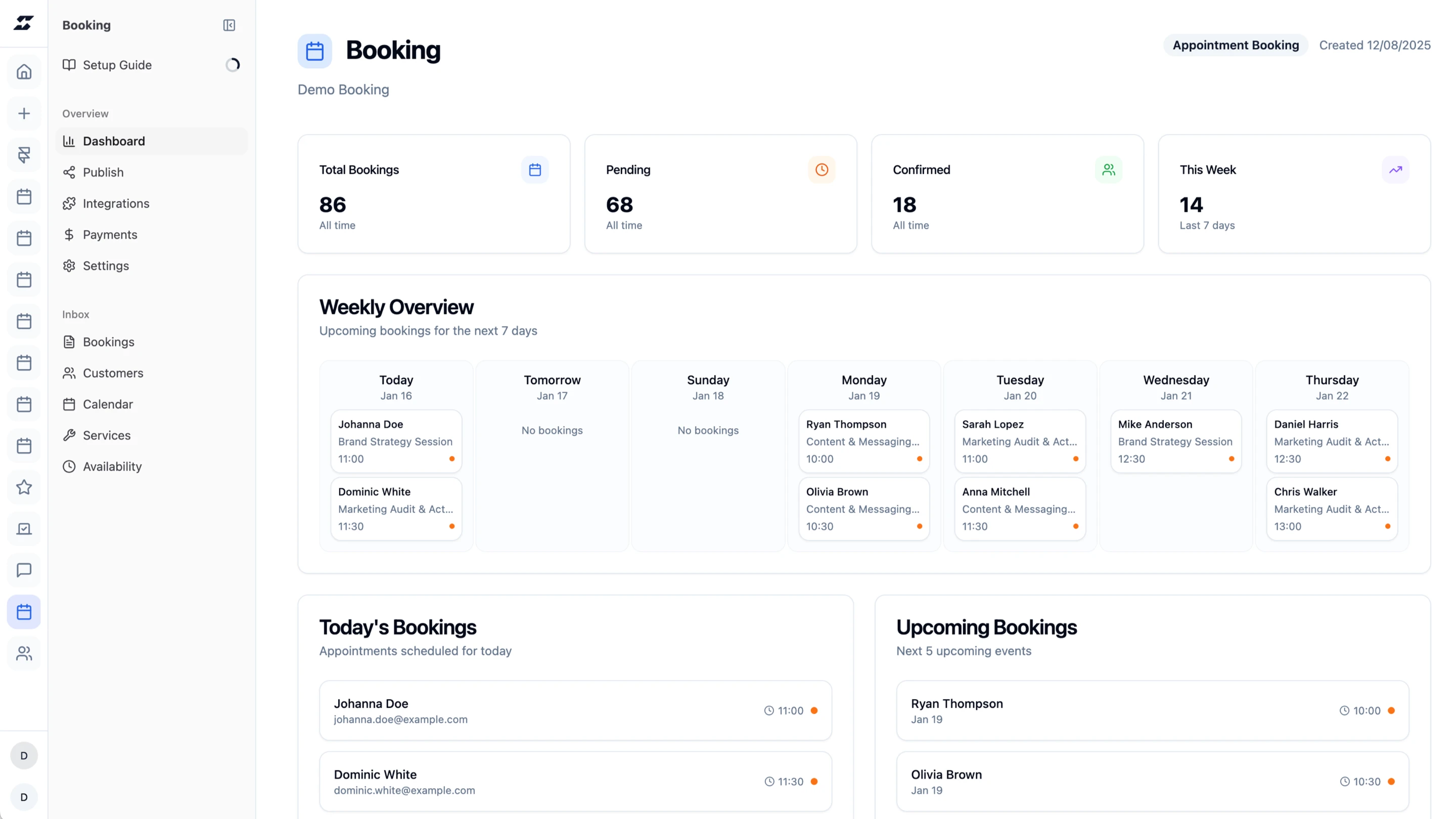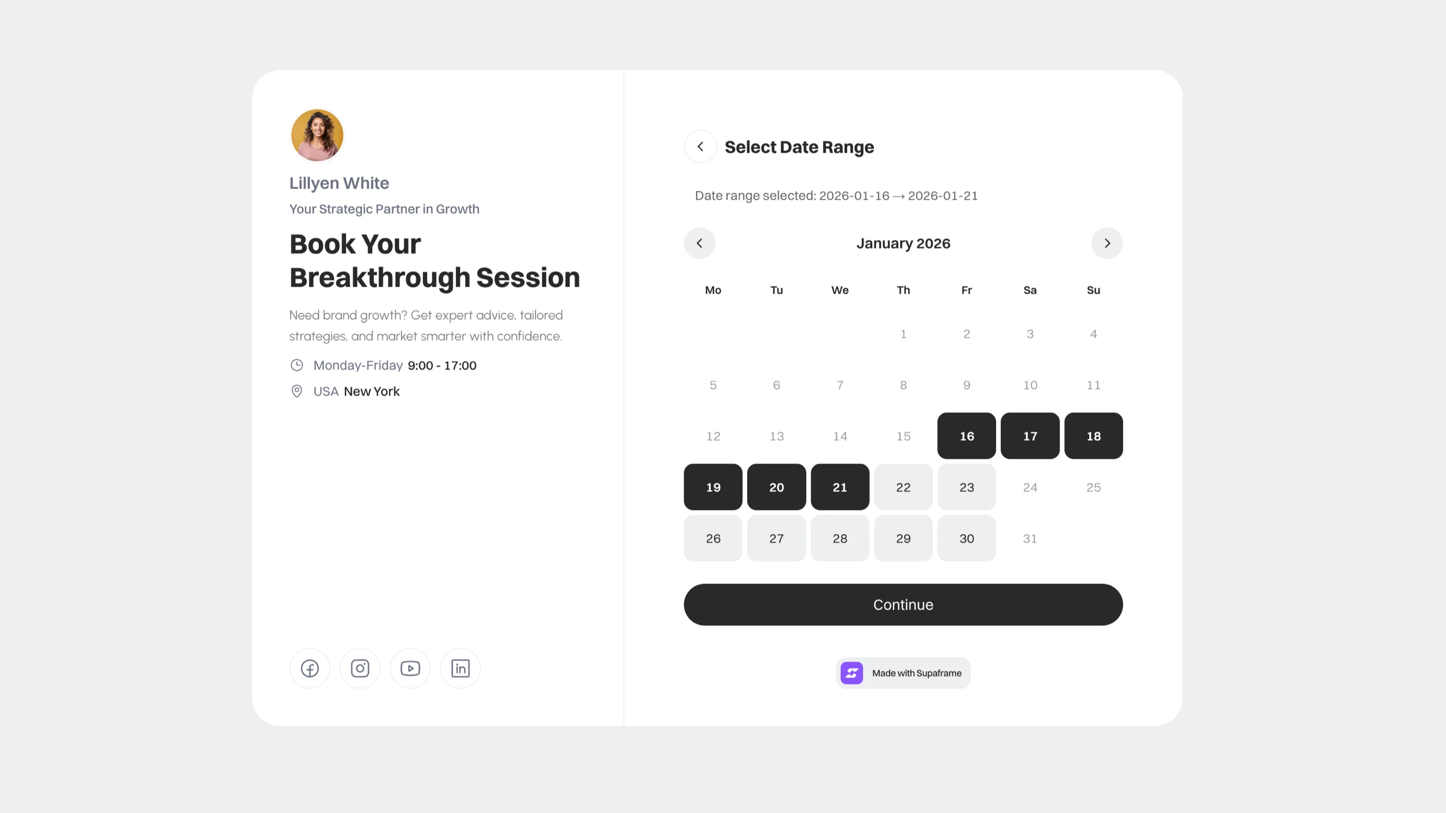 Add a fully functional booking system to any website — with a native Framer code component included. Customize the design, embed it anywhere, and manage every booking from one clean Supaframe dashboard. No plugins. No backend. No friction. Best for: consultants, agencies, coaches, studios, and service-based businesses that want fewer emails and more confirmed bookings.