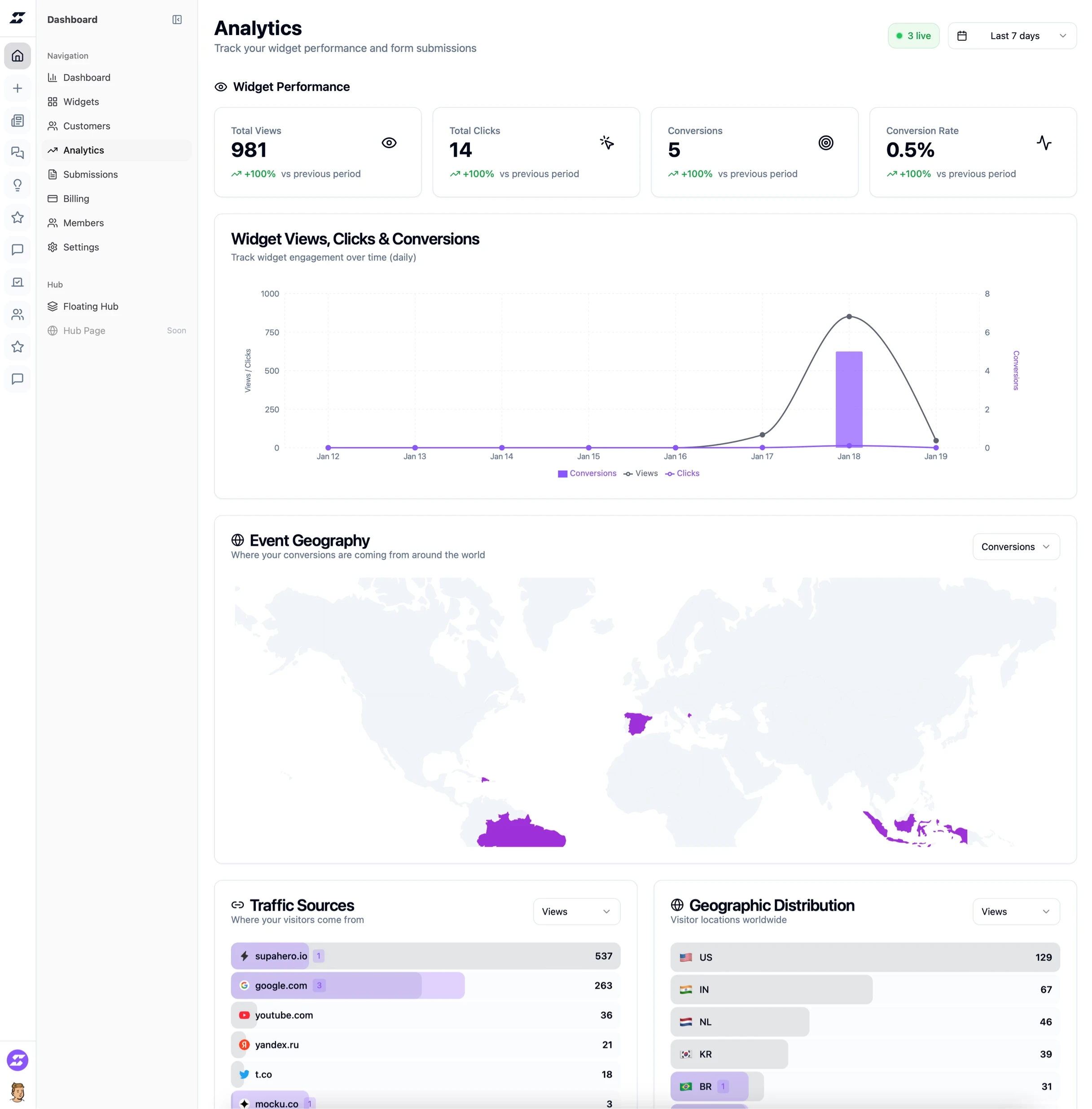 Supaframe Analytics gives you a clear view of how visitors turn into real leads and customers. Track every interaction across your widgets and websites, see where users come from, and understand which pages and traffic sources drive real conversions. From first visit to form submission, booking, feedback, or testimonial — everything is measured and connected in one dashboard, so you can make decisions based on data, not guesses.