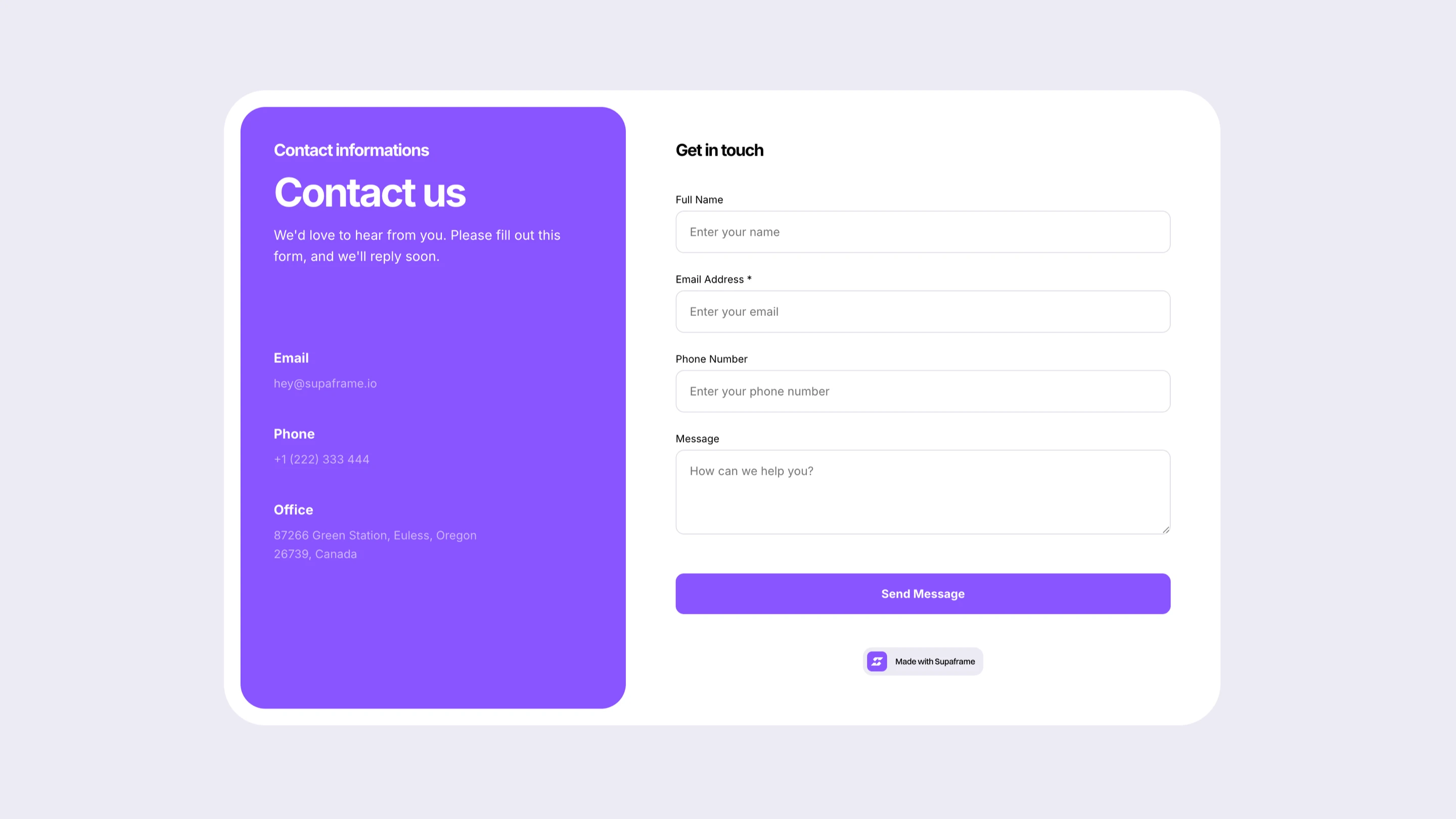 Explore ready-to-use Framer components that don’t just look good, they collect real data, manage leads, and keep everything organized in your Supaframe dashboard.