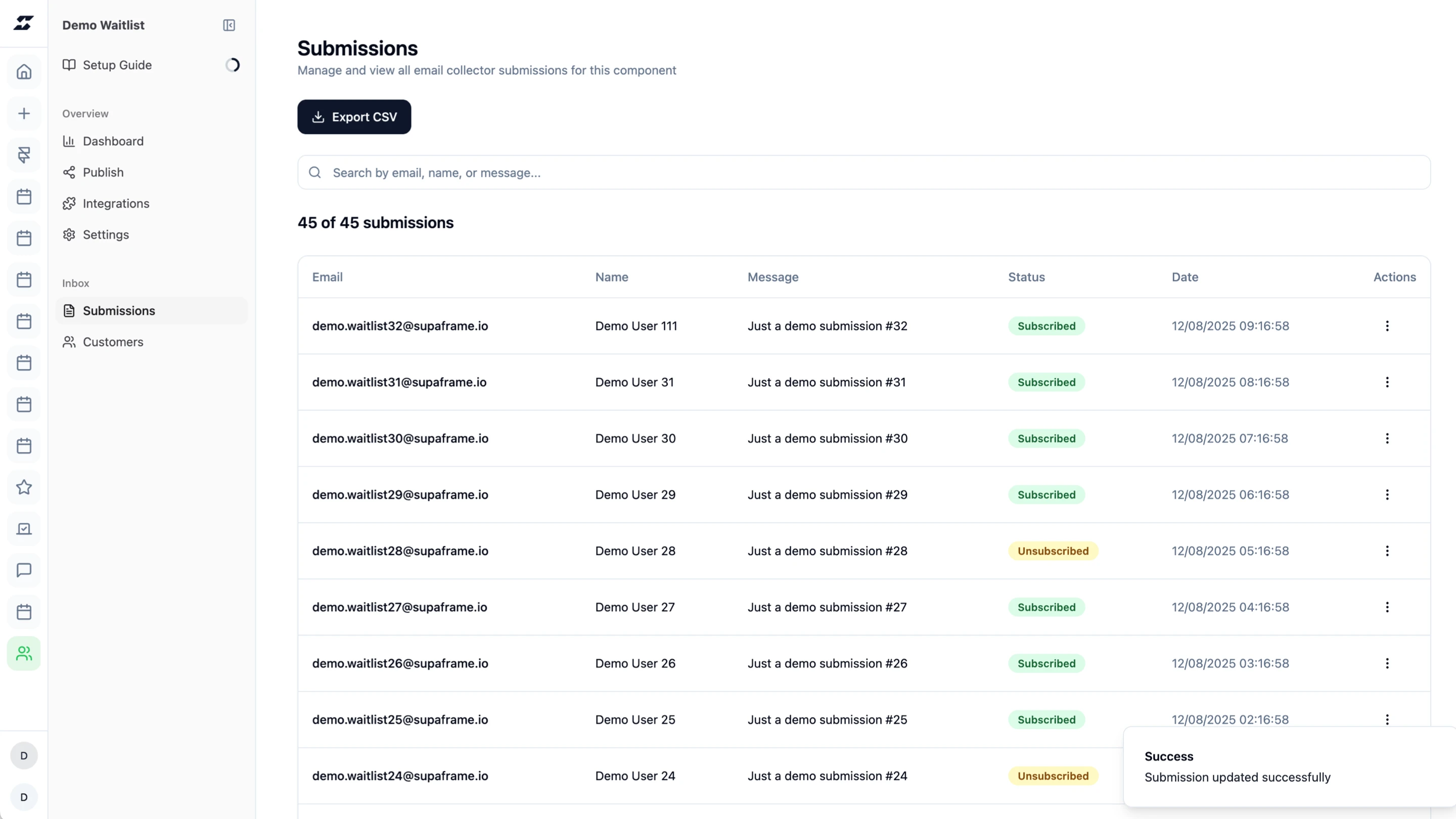Every component, every submission, all in one powerful dashboard. Supaframe helps you collect, track, and manage real customer data — without the chaos.