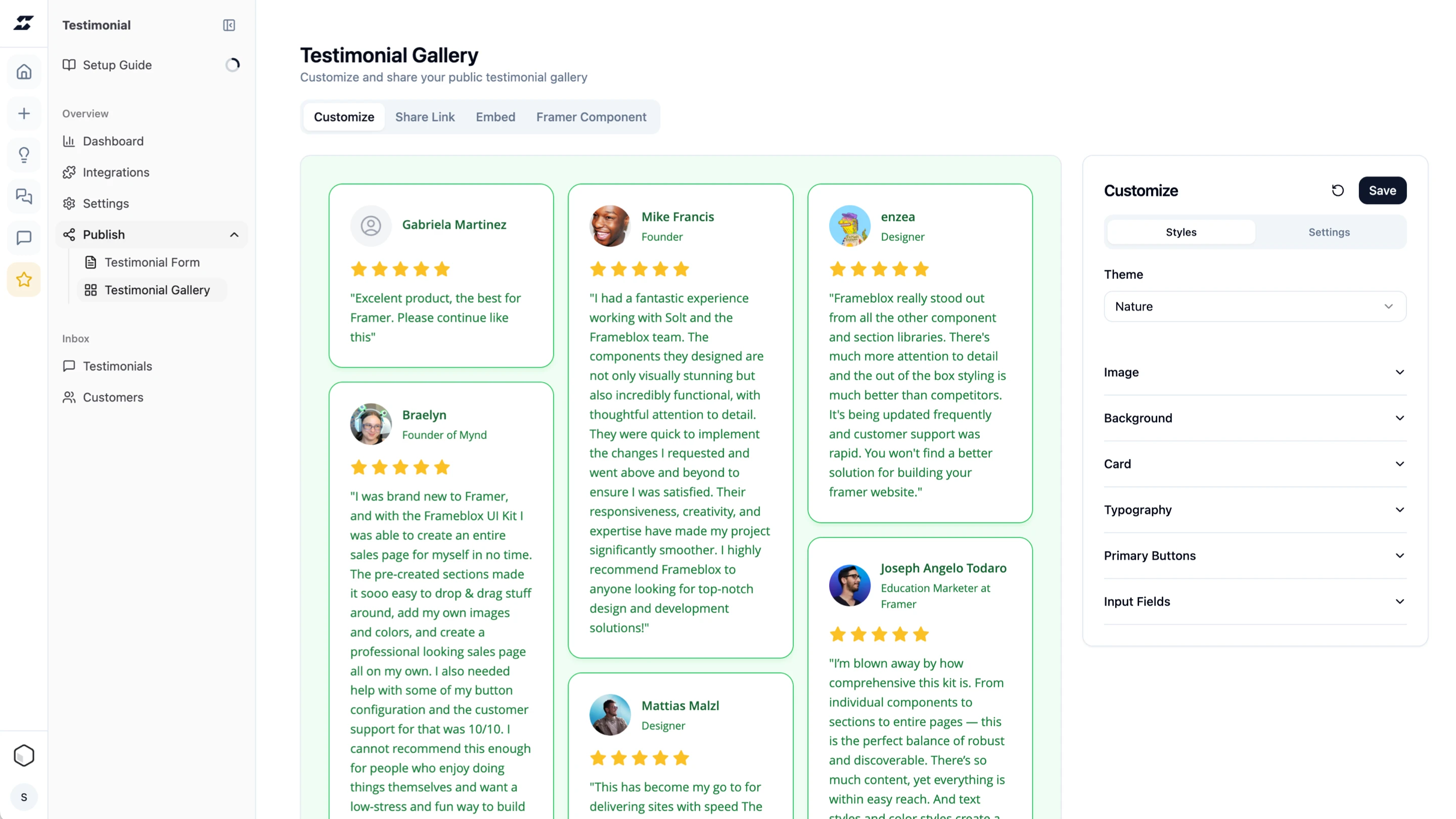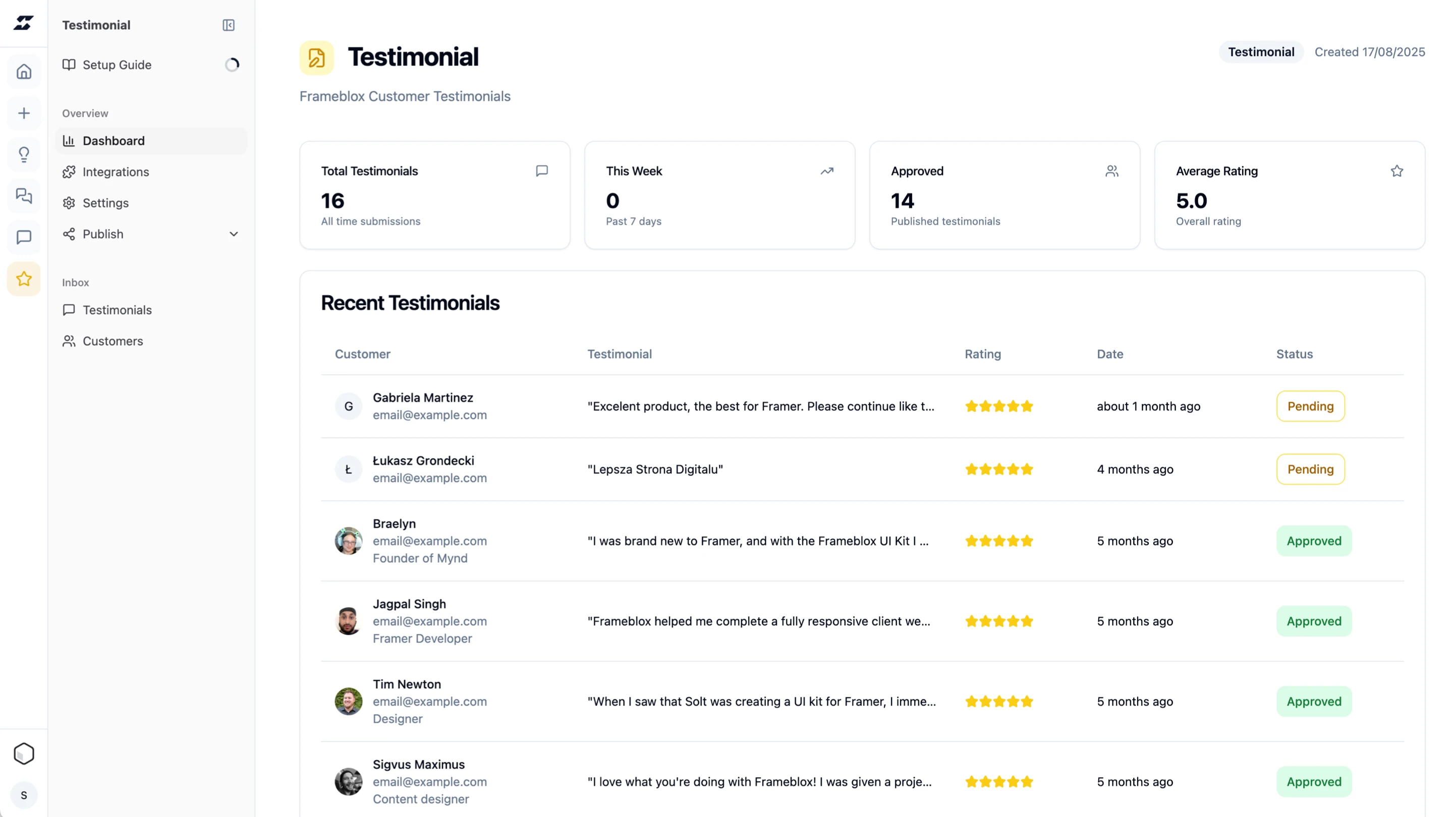 Showcase only approved testimonials on your site