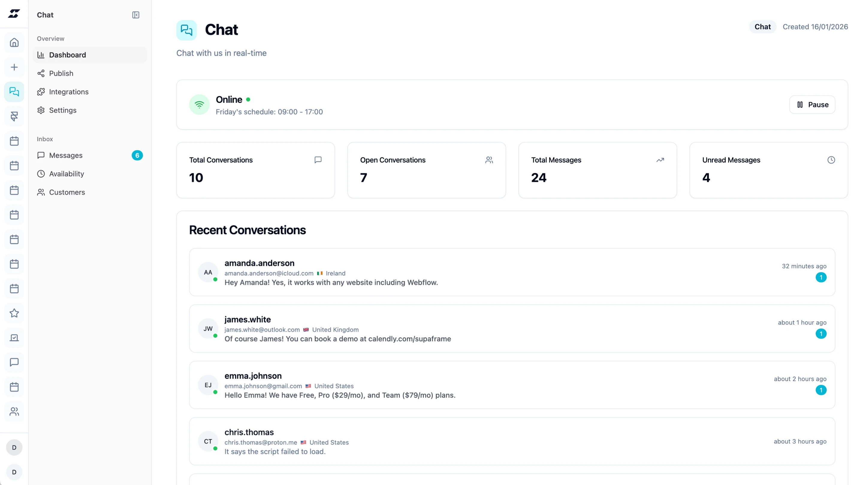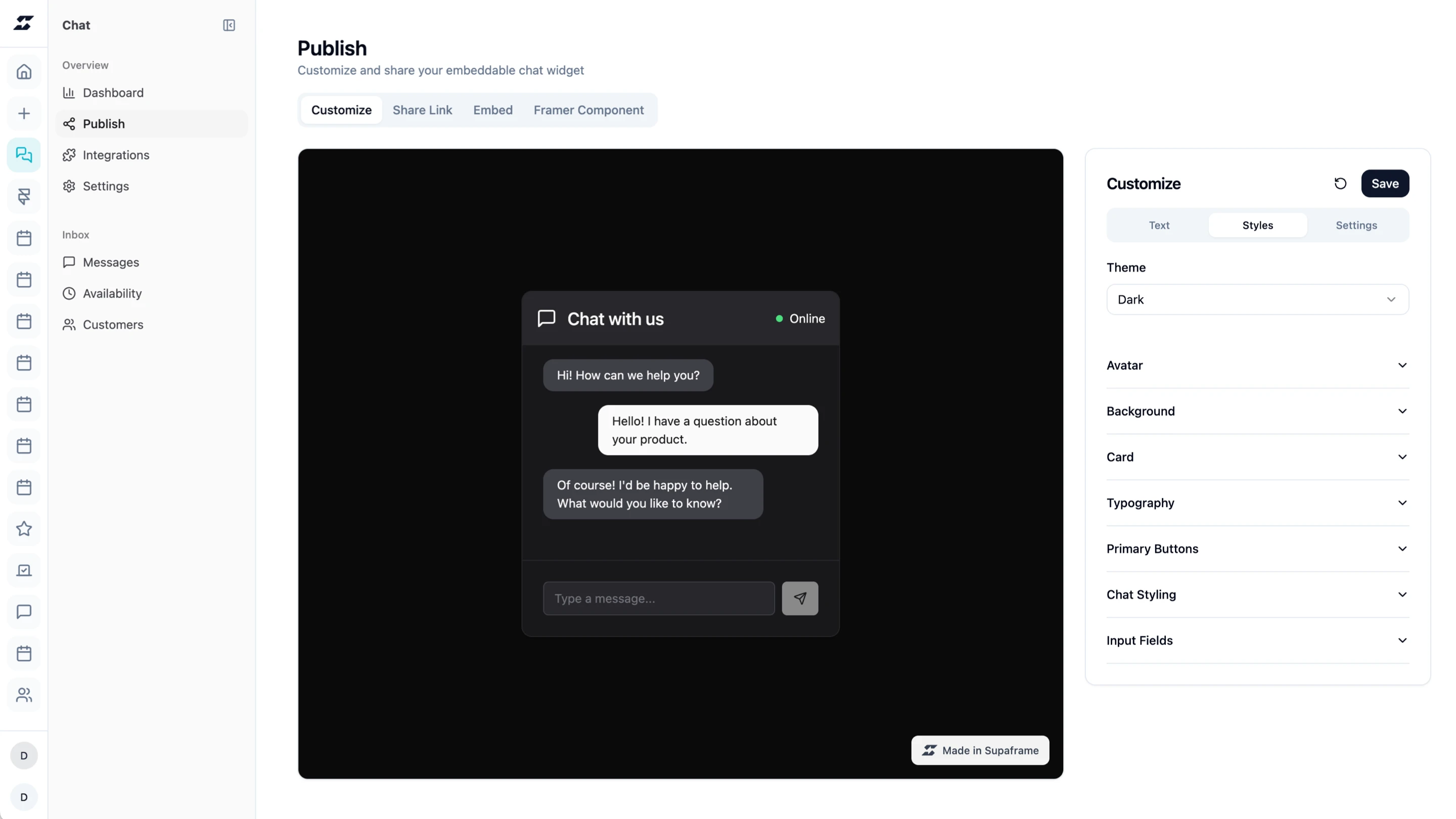Unified inbox in the Supaframe dashboard