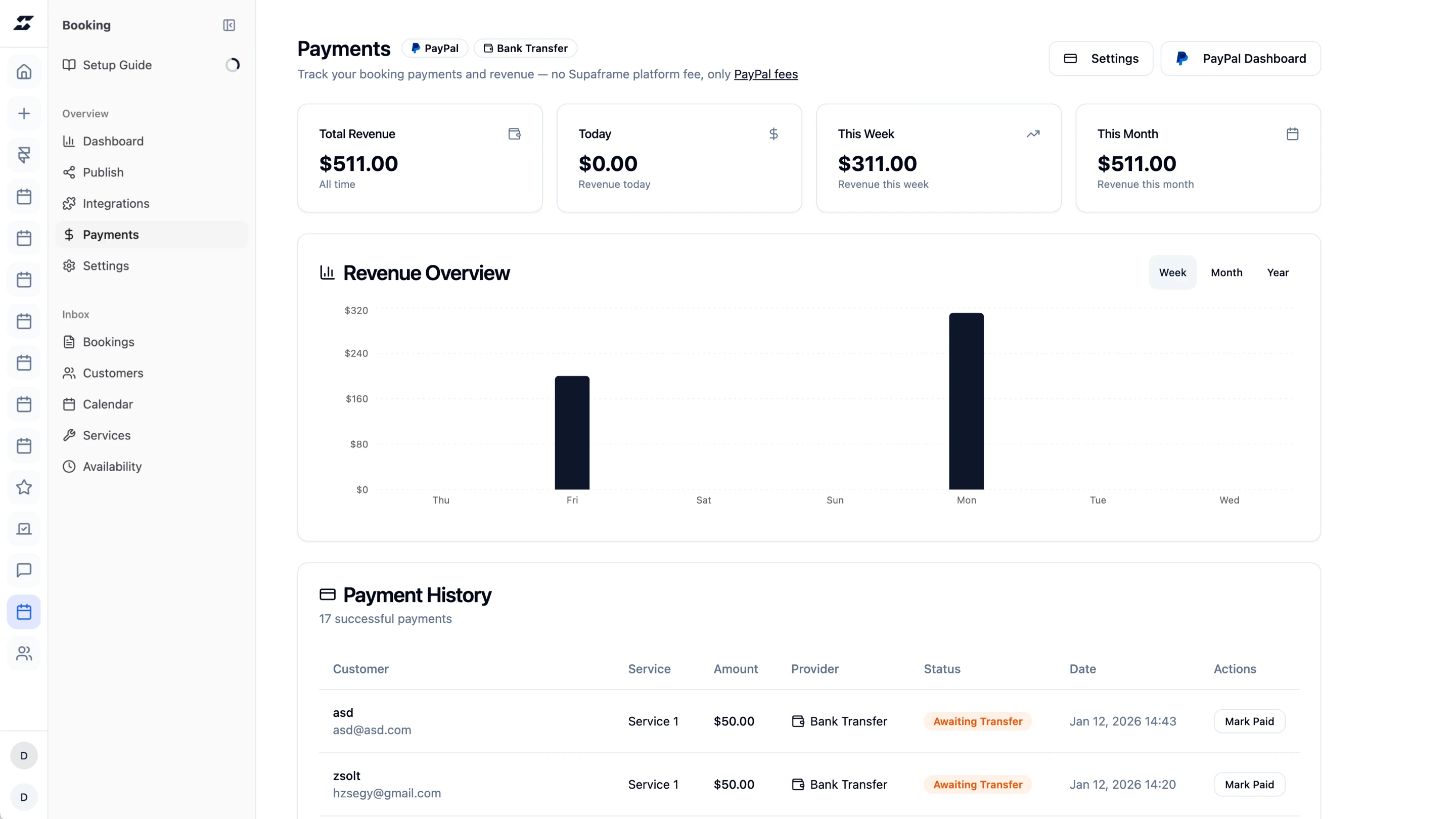 Supaframe helps you collect messages, bookings, feedback, and emails from your website — and manage every customer interaction from a single, simple dashboard.