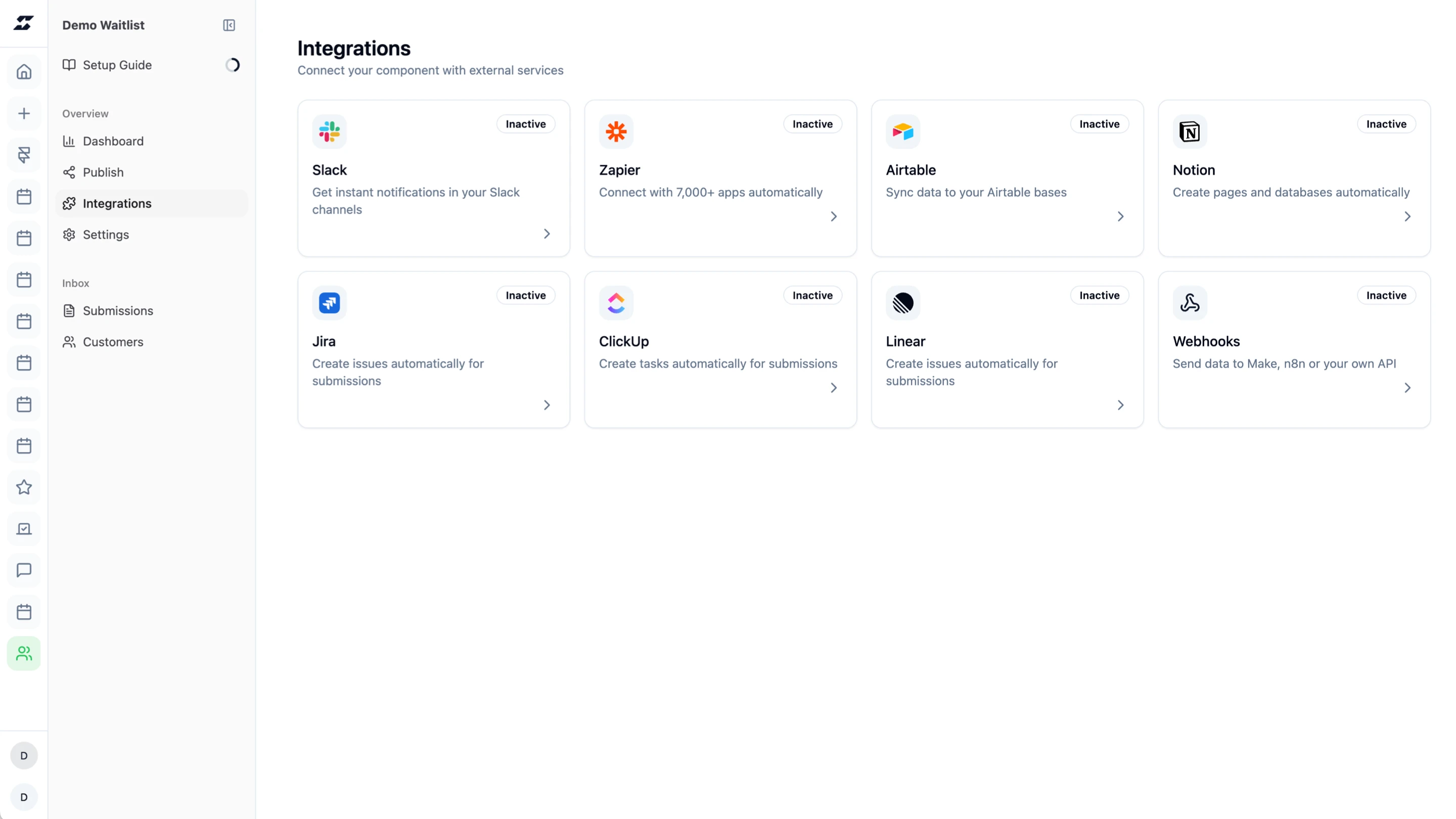 No-code setup in minutes. Embed anywhere and connect to anything with integrations and webhooks.