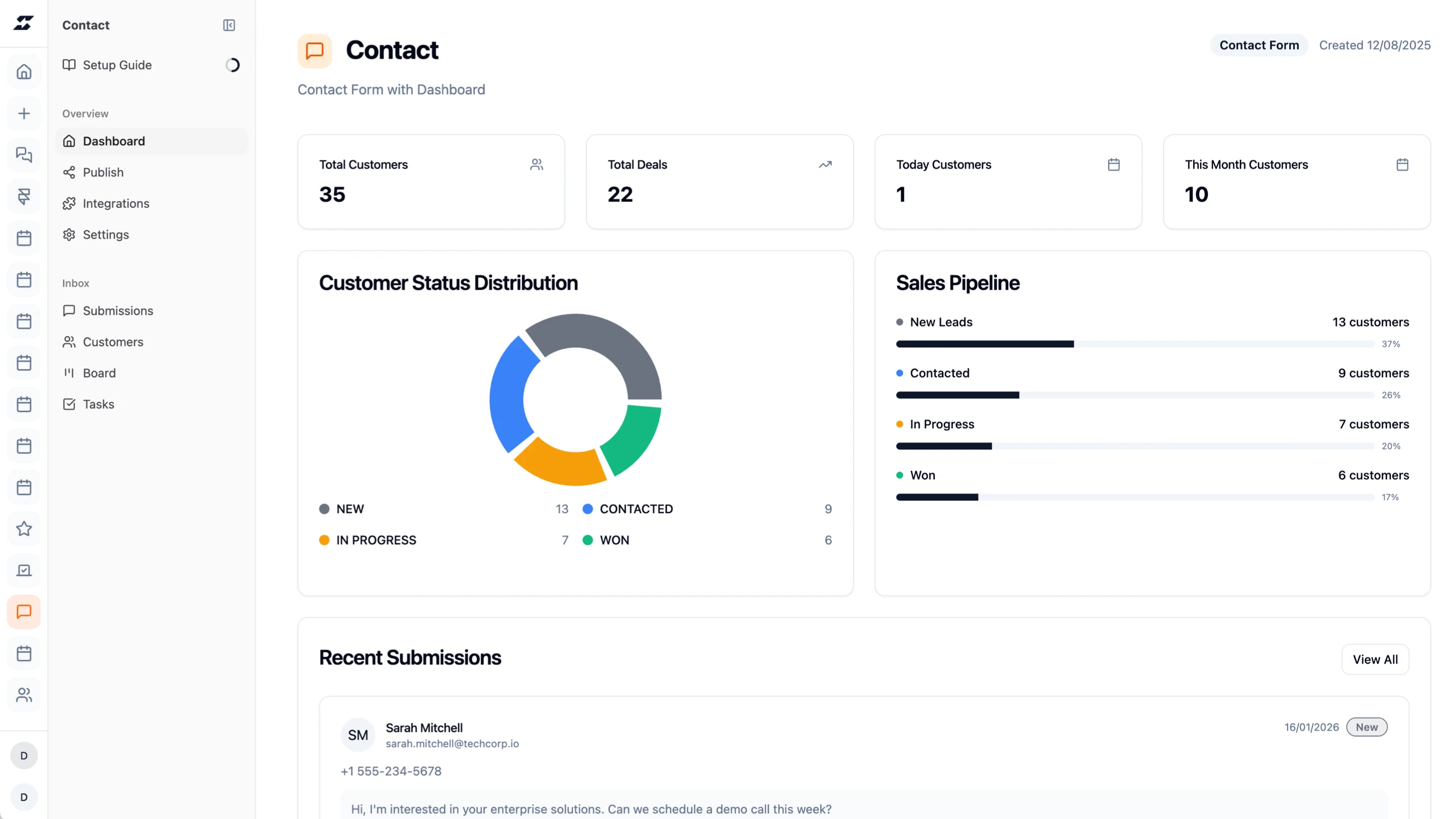 CRM dashboard for all inquiries