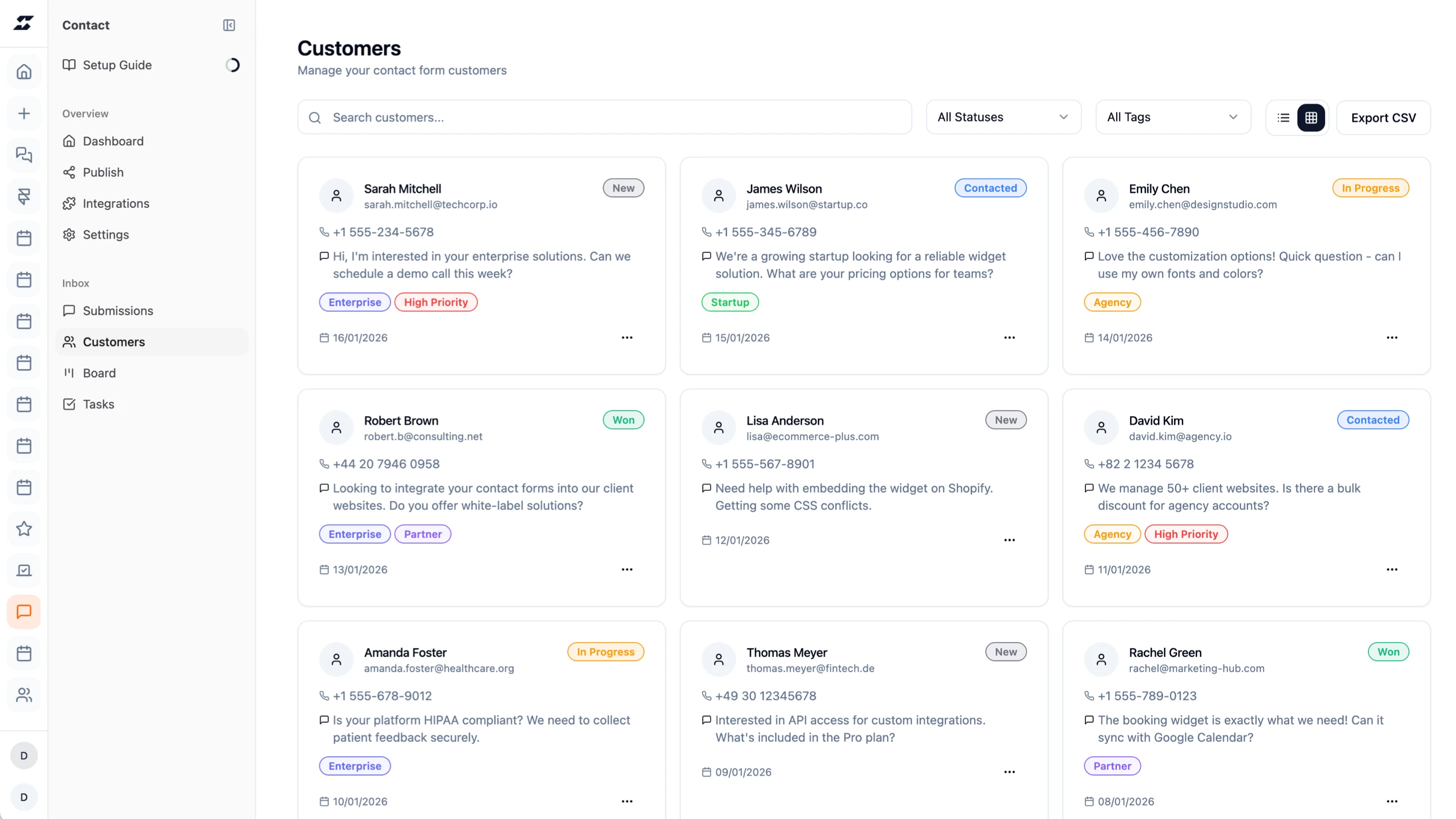 Organize leads by tags and status