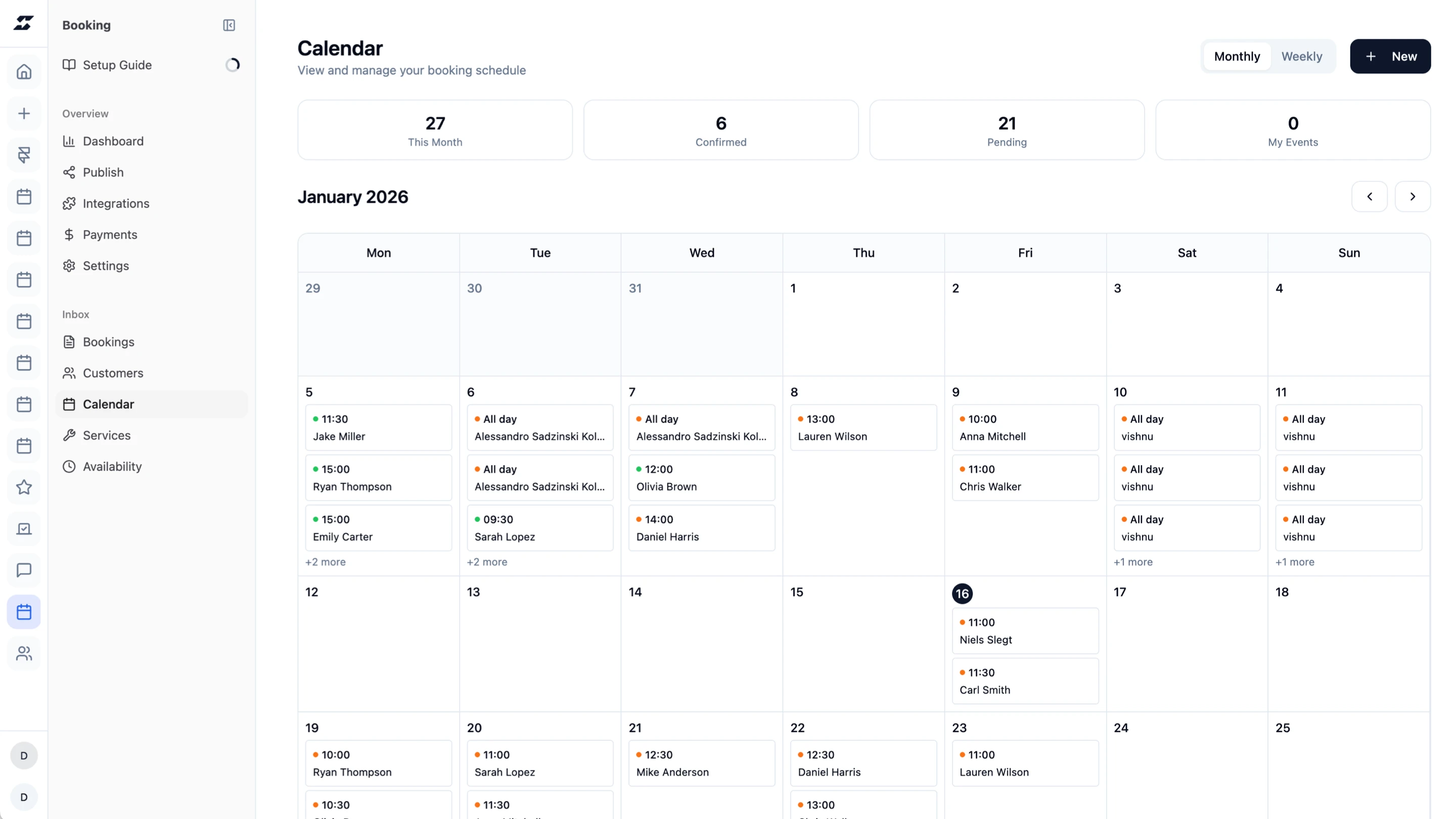 Monthly or weekly calendar view